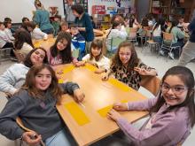 Alumnado de 6º expone sus aprendizajes sobre EEUU al alumnado de 1º, 2º y 3º.